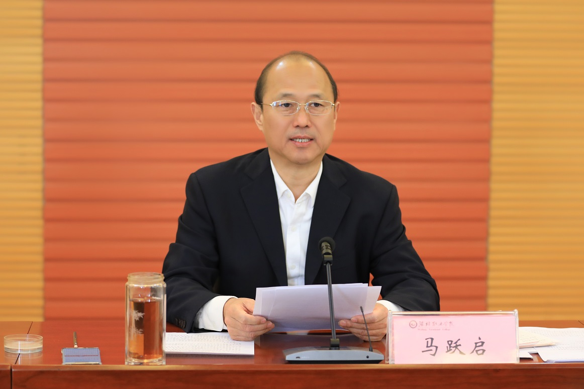 马跃启强调,全体师生员工要自觉把思想和行动统一到全会精神上来,扎实做好学习宣传贯彻落实工作。他指出,一是进一步明确办学指导思想和办学定位。要注重加强党的建设,落实好党委领导下的校长负责制,加强领导班子自身建设和基层党组织建设,打造高素质专业化干部队伍,落实党风廉政建设责任制,牢牢把握意识形态主动权。落实立德树人根本任务,推进习近平新时代中国特色社会主义思想进教材进课堂进头脑,将思政教育全面融入人才培养方案和专业课程,完善“三全育人”工作格局,培养德智体美劳全面发展的社会主义建设者和接班人。二是抢抓机遇建设职教高地。要紧盯国家战略需求,以提质培优、增值赋能为主线,以提升人才培养能力为核心,以强化治理为关键,以提升服务区域产业和经济社会发展能力为重点,谋划好建设中国特色高水平高职院校、创建本科层次职业技术大学的时间表和路线图。三是推进学院全面高质量发展。要综合研判当前形势和2035年教育发展形势,统筹基础条件、发展环境、政策工具、师生期待等多方面的变化,聚焦三教改革,做出长远规划。要通过“十四五”建设在专业建设、师资队伍建设、人才培养、产教融合、内部治理、社会服务等方面形成引领职业教育发展的新标准、新机制、新模式,建成中国特色高水平高职院校成为引领职业教育改革发展的示范校、标杆校,为国家战略实施及区域经济社会发展提供有力支撑。