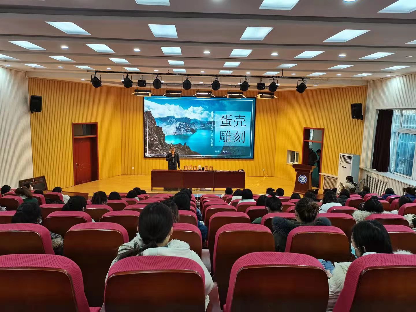 12月3日,学院第59场人文素养讲座在奎文校区创业中心报告厅举行。潍坊蛋雕艺人刘洋为同学们作了一场关于蛋壳雕刻艺术的讲座,奎文校区80余名师生聆听了讲座。