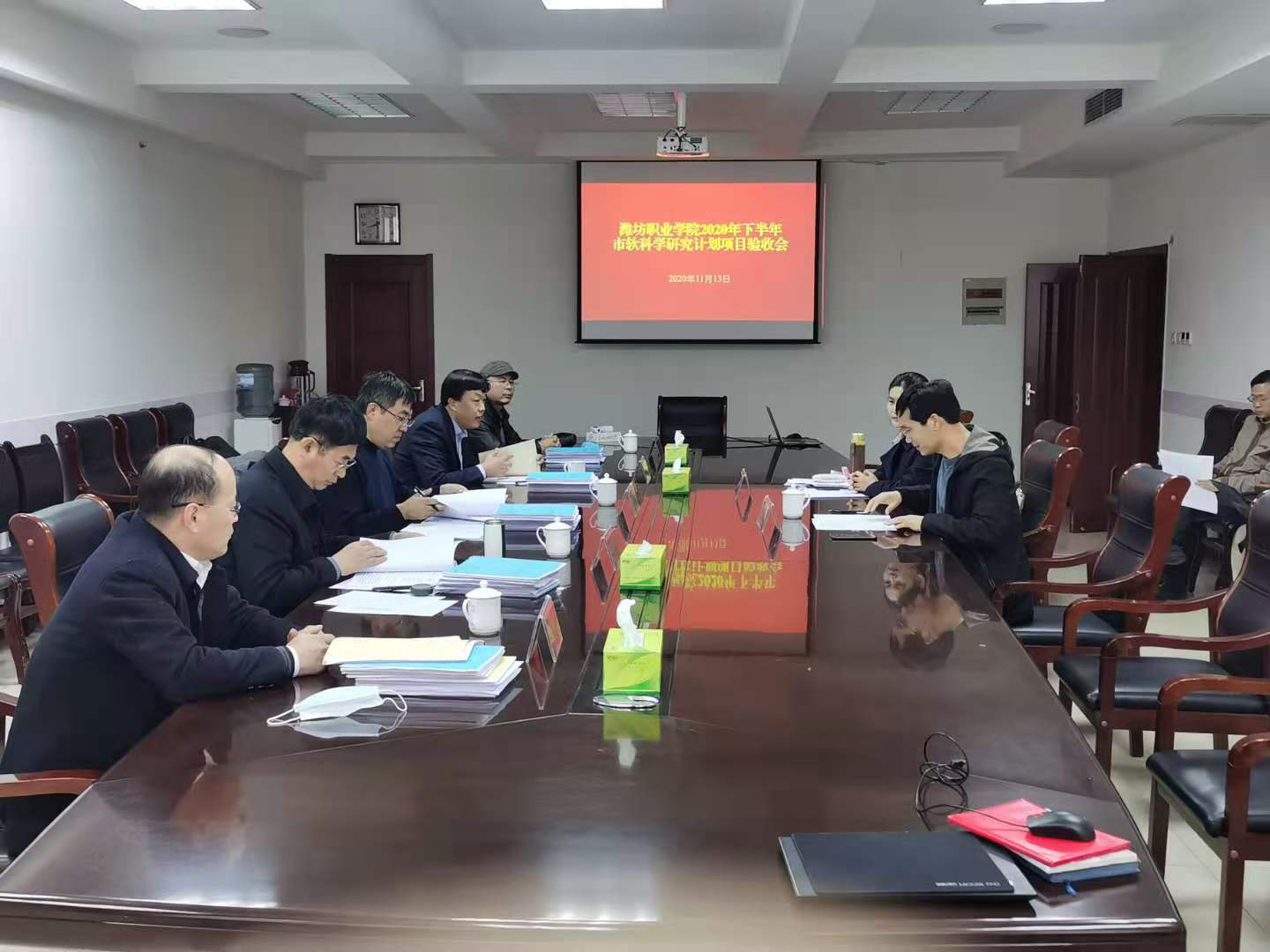 11月13日,潍坊市科技局组织来自潍坊科技学院、山东科技职业学院、山东经贸职业学院、潍坊工程职业学院的技术、管理和财务审计专家组成验收专家组,在奎文校区第二会议室召开验收会,对MG冰球突破官网承担的9项潍坊市软科学研究计划项目进行了验收。