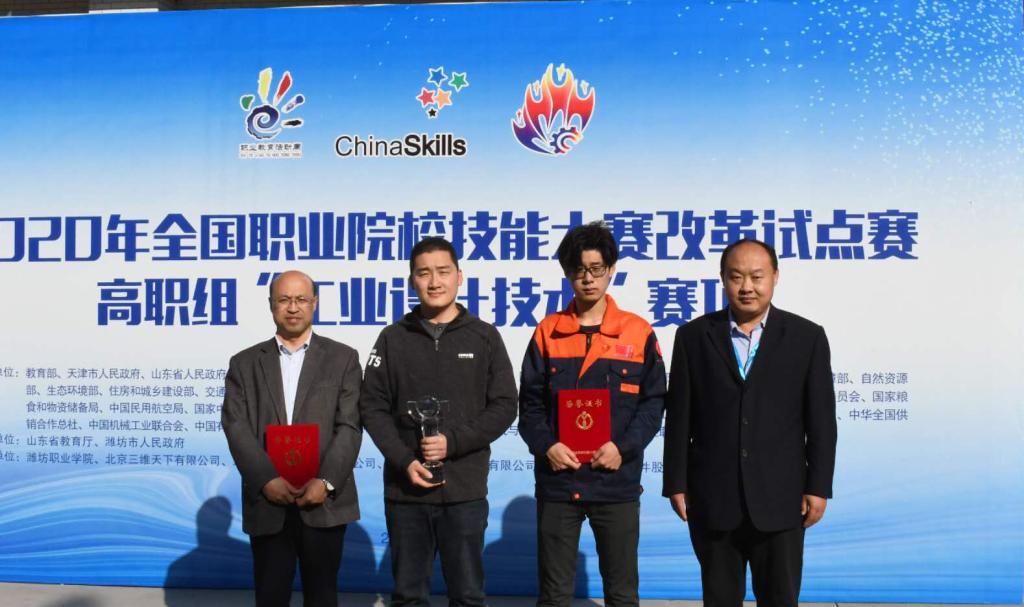 11月6日至11月10日由教育部主办的2020年全国职业院校技能大赛改革试点赛高职组“工业设计技术”赛项在MG冰球突破官网举行,来自全国28所高校的选手参加了本次比赛。我校机电工程学院选派2018级模具设计与制造班学生乔士增,指导教师姜文革组成的山东省参赛队最终以总分第一名的优异成绩荣获一等奖。