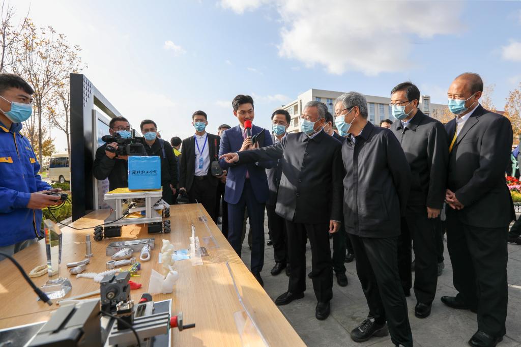 陈宝生在讲话中说,党的十九届五中全会,对职业教育提出了新的更高要求。我们举办这次活动,是贯彻落实五中全会精神的一次实际行动,也是对山东职业教育创新发展高地建设的实践检验和成果展示。一年来,山东职教高地建设取得重大突破,“山东模式”基本定型。当前,全国职业教育会议正在筹备,职业教育法也在修订,山东的经验提供了实践发展支撑,一些成功做法已经向全国推广。今年的全国职业院校技能大赛是一次改革试点,我们希望通过此次比赛,扛起当今世界水平的职业技能大赛中国队的大旗,对中国职业技能发展的未来导航定向,推动职业教育标准不断优化升级,更好促进成果转化、技术应用、人才培养。“十四五”时期,我们要让职业教育“长入”经济,成为经济活动的内生变量;“汇入”生活,提高人民群众生活质量;“融入”文化,增加文化中的技能含量;“渗入”人心,形成国家重视技能、社会崇尚技能、人人学习技能拥有技能的浓厚氛围;“进入”议程,进入各级党委和政府议事日程,发挥好职业教育在促进经济社会发展中的重要作用,推动职业教育高质量发展,努力建设技能型社会,建设技能中国。