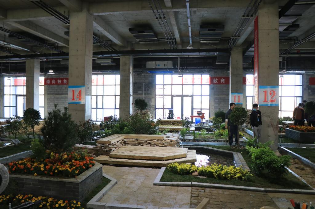 本次比赛完全对接国赛试点赛和世赛标准,赛期三天半,时间为22小时,竞赛内容是在7×7m的场地里,按设计好的赛题,使用工具对指定造景材料进行制作、安装、布置和维护。比赛过程中,要求选手合理的安排工作流程、注意个人防护,施工动作符合人体工程学,同时要合理安排工时,在完成每天测评模块的前提下可以提前进行次日考核模块的制作。