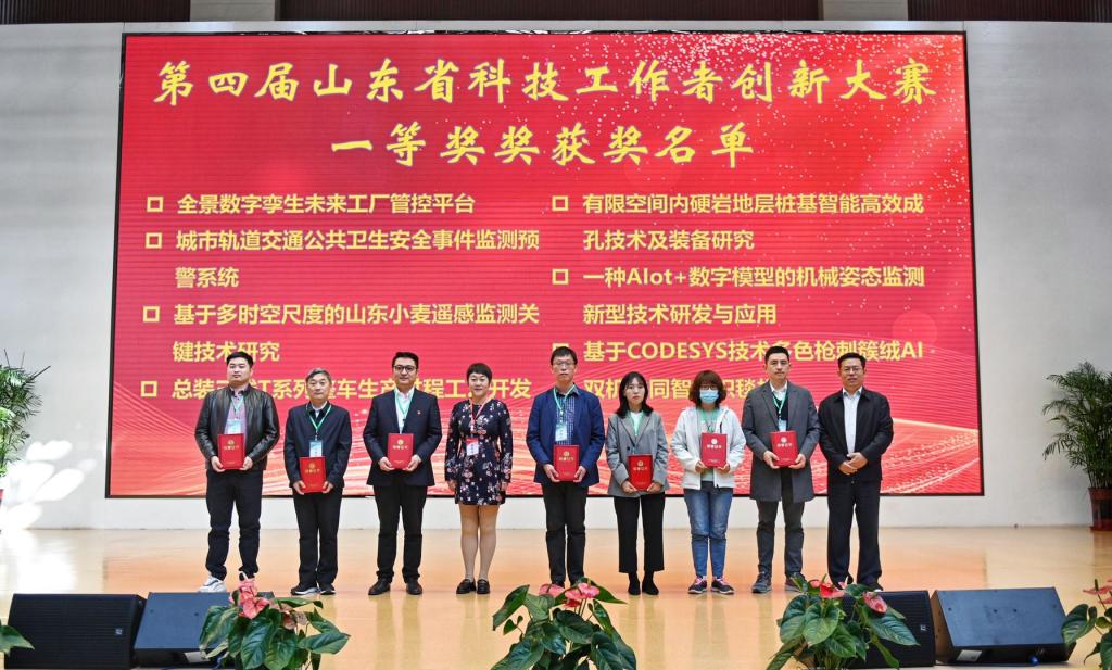 第四届山东省科技工作者创新大赛由山东省科学技术协会主办,以“促进科技经济融合,助力数字人才培育”为主题,自今年7月份正式启动,汇集了省内14地市,300余家高校、企业、科研院所、孵化器及科技组织推荐的典型性应用成果、数字经济领域新型基础设施建设、新一代信息技术的创新性研究3大领域241个项目参赛,经过严格的初审、网络投票、复审、现场问询、答辩等多个环节,最终全省共评出一等奖15项、二等奖30项、三等奖45项。