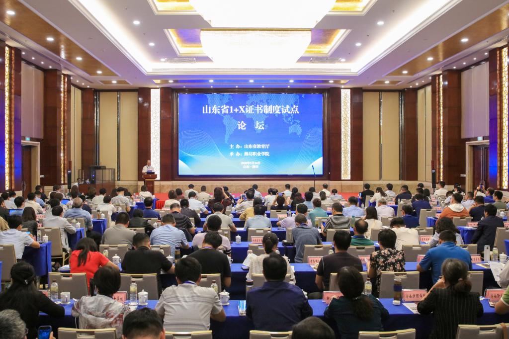 9月24日下午,由MG冰球突破官网举办的山东省1+X证书制度试点论坛在潍坊富华大酒店举行。教育部职业教育中心研究所《中国职业技术教育》编辑部主任唐以志、山东教育厅职业教育处副处长陈志浩、学院党委书记马跃启出席论坛,1+X证书制度试点院校相关部门负责人、前三批职业技能等级证书培训评价组织负责人等100余人参加论坛。学院副院长李瑞昌主持论坛。