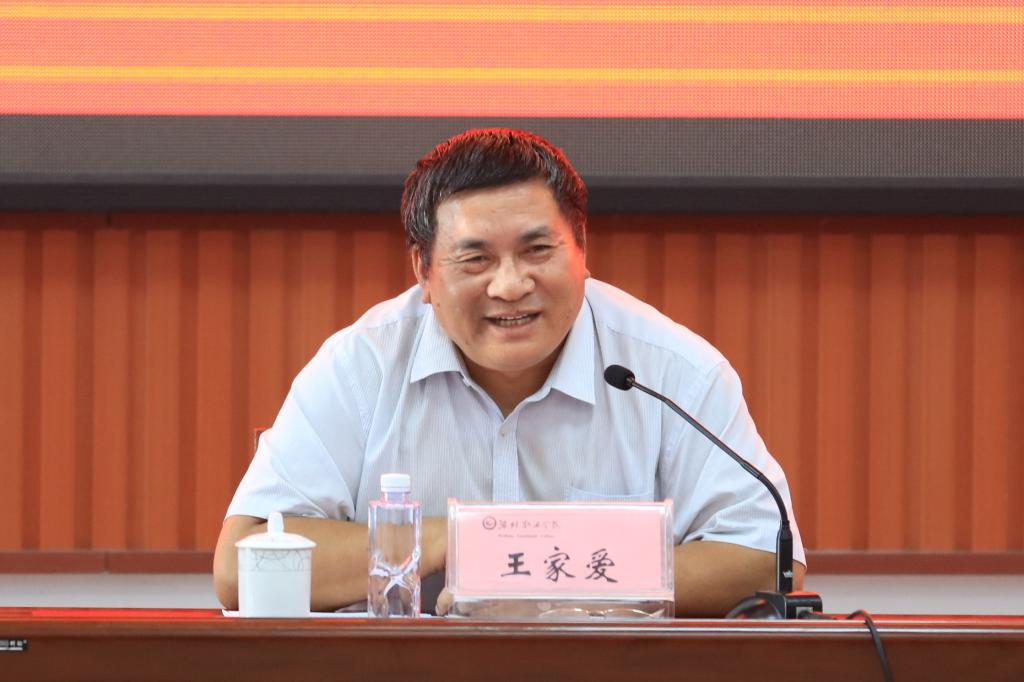 学院院长王家爱讲话。他对新进教师加入MG冰球突破官网这个大家庭表示欢迎和祝贺。他指出,当前职业教育正处于黄金发展期,学院也处在建校以来最为激动人心的发展阶段,“双高/职教高地”建设如火如荼,新进教师在学院用人之际入职潍职,正逢其时;他强调,教师在学校发展中起决定性作用,学院一路负重前行,能在这片盐田上建设起一个水润木泽、鸟鸣鱼跃的全国优质高职院校和“双高”校,靠的就是敢打硬仗、能成大事的教师队伍,新进教师要把“崇实尚行”潍职文化和“敢于争先”潍职精神继承并传承下去;他期盼,新进教师要学高身正、为人师表,知行合一、心中有爱,通过自身努力在潍职这个舞台上施展才华、成就自我,最终成长为高素质、专业化、创新型的优秀教师、名师、大师。言者,深沉讲述,传道授业解惑,听者,侧耳倾听,注目沉思展望。王家爱最后对新进教师提出了四点希望和要求:一要转变角色、融入团队。在充分领悟学院精神文化内核的基础上,敞开心扉融入到潍职大家庭中,以满腔的热情投入到学院建设中去;二要不忘初心、立德树人。牢记从教初心和育人使命,言传身教、正向引导,做学生永远的导师;三要善于学习、勇于实践。跟上时代步伐,向书本学习、向实践学习、向学生学习、向先进榜样学习,做到触类旁通、一专多能,久久为功必有收获;四要坚守师德、不碰红线。以德立身、以德立学、以德施教,担负起传播知识、传播思想、传播真理,塑造灵魂、塑造生命、塑造新人的时代重任。