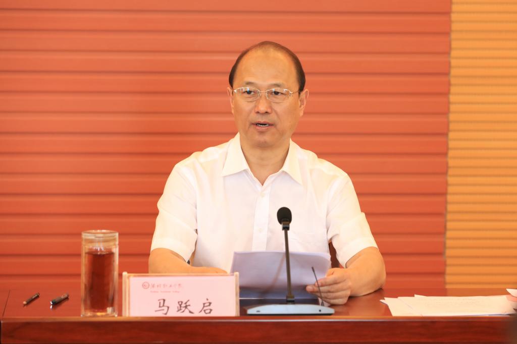 马跃启主持并讲话。他首先向各位代表及全院广大教师表示节日祝贺。他指出,兴教必须强师,教师是学校的立校之基、发展之源。学院的高质量发展离不开广大教师的积极参与和大力支持。当前,学院既面临难得的发展机遇,也面临严峻的挑战,“双高/职教高地”建设,滨海校区重大基础设施建设、省级文明校园创建、创建职业教育本科等等,任务艰巨而繁重。他代表学院党委向全院教师提出三点要求。一是不忘初心,牢记立德树人使命。切实肩负起为党育人、为国育才的历史使命,加强自身政治建设和师德师风建设,坚定理想信念、厚植爱国情怀、加强品德修养、增长知识见识,牢记习近平总书记“六要”嘱托,争做“四有”好老师,做好“四个引路人”。二是奋进担当,合力打造“魅力潍职”。按照“高素质、专业化、创新型”教师发展目标,不断提升争先创优、攻坚克难本领;抓好教师管理、发展及服务,特别是抓好教师职称、绩效考核、收入分配等管理、激励制度方面的改革。三是尊师重教,努力提升教师职业幸福感。落实各项惠师、强师工作措施,大力营造教学光荣、教师光荣的校园氛围,形成尊师重教长效机制。广泛调研倾听老师们的意见建议,为基层及教师减负,为教师成长搭建平台,为教师教学、科研做好后勤保障,提高教师的获得感、幸福感。