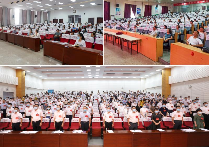 7月17日,在庄严的国歌声中,学院第六届教职工代表大会暨工会第六届会员代表大会第一次会议在滨海校区图书馆楼报告厅开幕。学院原党委书记、潍坊市人大常委会委员、教科文卫委副主任委员张洪全,市总工会常务副主席贾平,市总工会办公室主任范新利,学院领导马跃启、王家爱、宋桂言、赵君堂、贺志强、李瑞昌、郭晓辉、谭明、刘德强,大会特邀代表、学院离退休老领导及大会主席团成员出席大会并在主席台就座。潍坊市教育工会委员会发来贺信。大会正式代表、列席代表300余人参加会议。党委副书记宋桂言主持会议。会议在滨海校区清泽楼报告厅、奎文校区16号楼报告厅设分会场。