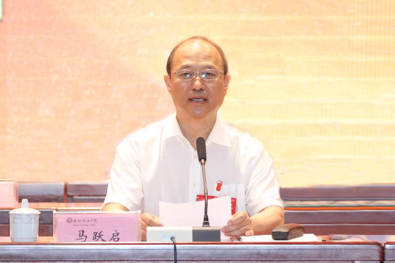 马跃启代表学院党委对大会的召开表示祝贺。他指出,本次大会全面总结回顾过去三年以来学院的工作成绩,客观剖析工作中的不足与问题,分析发展面临的新形势、新挑战、新任务,研究确定学院2020年下半年重点工作及今后三年乃至“十四五”时期的主要工作思路和任务目标。他强调,2020年是实施学院“十三五”发展规划的收官之年,是“双高/职教高地”建设、滨海校区二期建设起步成势之年,也是学院事业承上启下、实现跨越发展的关键之年。面对新时代现代化发展目标和高质量发展主题,他提出三点要求:一要与时俱进学习,加强政策理论研究。要解放思想、更新理念,用新时代科学理论武装头脑、指导实践,推动工作,为学院提质培优创新发展、高质量发展献计献策。二要深入调查研究,广泛征求意见建议。在调研中要深入宣传好党和国家的好政策和学院改革发展的美好蓝图、思路举措,解疑答惑、鼓舞干劲,凝聚共识、形成合力,真正实现“发展依靠全体师生、发展成果由全体师生共享”的目标要求。三要勇于担当责任,认真行使代表权力。以高度的政治担当和使命自觉,认真履行代表职责,正确行使民主权利,积极建言献策,为学院发展贡献力量。