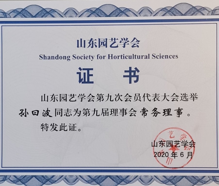 MG冰球突破官网教师当选山东园艺学会常务理事