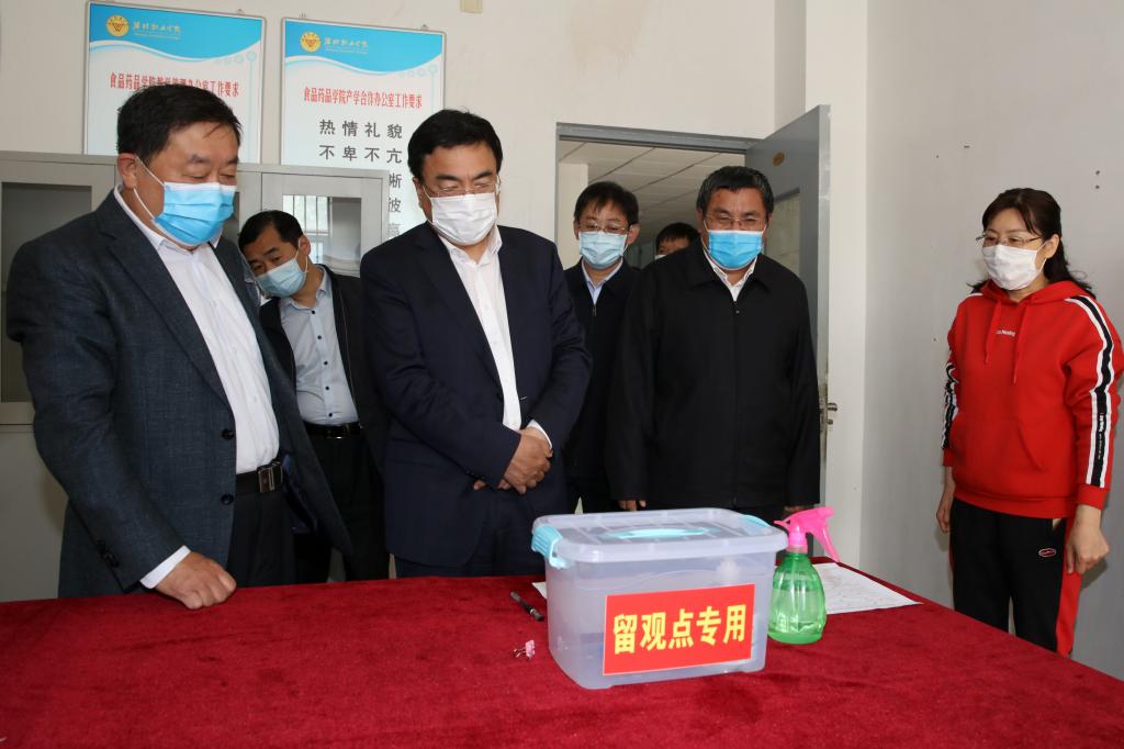 为全面做好学生复课前的疫情防控准备工作,切实保障师生身体健康和生命安全,5月13日上午,潍坊市人大常委会副主任、潍坊市滨海区党工委书记范福生带领工作组到MG冰球突破官网进行2020年春季学期开学条件核验,学院院长王家爱、党委副书记宋桂言陪同检查。