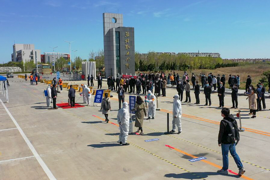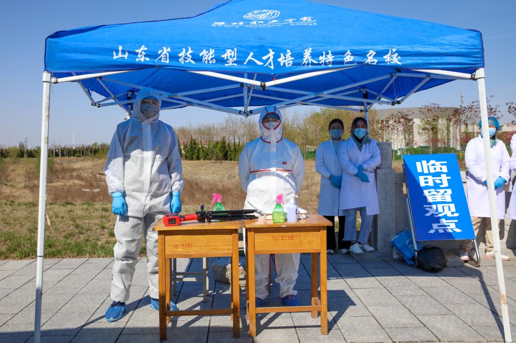 为坚决打好新冠肺炎疫情防控阻击战,落实学院疫情防控措施,提高防范和应急处置能力,保障学院师生的生命安全和身体健康。4月20日,学院在滨海校区举行2020年春季开学疫情防控与应急演练,学院领导马跃启、宋桂言、赵君堂、贺志强、李瑞昌、郭晓辉、刘德强,各部门、二级学院主要负责同志,及部分辅导员、教师代表参加演练观摩。