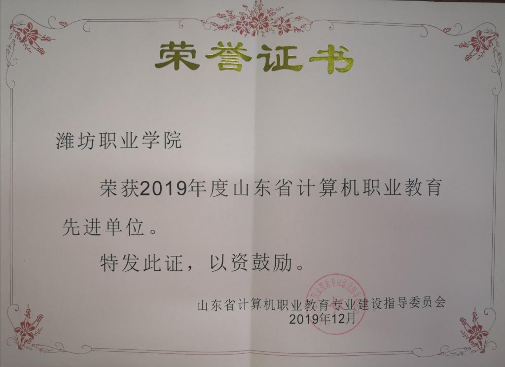 MG冰球突破官网被评为2019年度山东省计算机职业教育先进单位