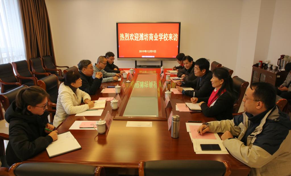 12月9日下午,潍坊商业学校副校长魏延胜一行5人来MG冰球突破官网考察交流。学院副院长刘德强在清泽楼会议室会见客人,招生就业处、学生工作处负责同志及相关人员参加了交流座谈。