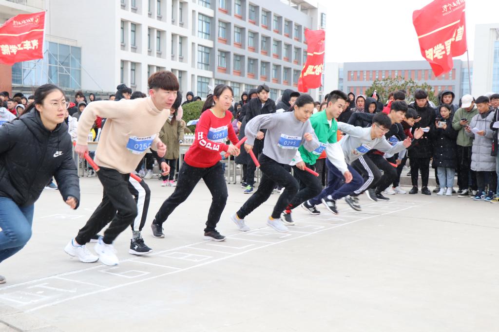 本次比赛是“我为优质校添光彩”系列活动之一,经前期积极筹备,各二级学院分别选派代表队参加比赛,每个代表队由5名选手组成,其中男选手3人、女选手2人,自由组合接棒次序。选手从西门“水球”出发,绕广泽路一周,全程共计1.5公里。虽然比赛当天气温寒冷、伴有风雪,但参赛选手和现场观众热情高涨、动力十足,展现了MG冰球突破官网大学生良好的精神风貌。机电工程学院流行音乐社little blue乐队在寒风中为大家演唱了精彩的励志歌曲,为比赛增添了温情和激情。