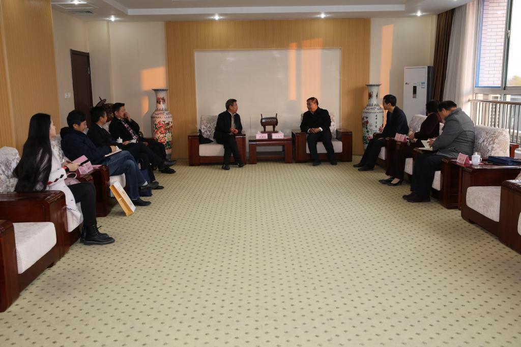 11月21日下午,滨州职业学院党委委员、滨州应用科技研究院院长胡洪涛一行5人来MG冰球突破官网进行考察交流。学院纪委书记郭晓辉在滨海校区清泽楼接待室会见客人,科技处、机电工程学院、汽车工程学院负责同志参加座谈。
