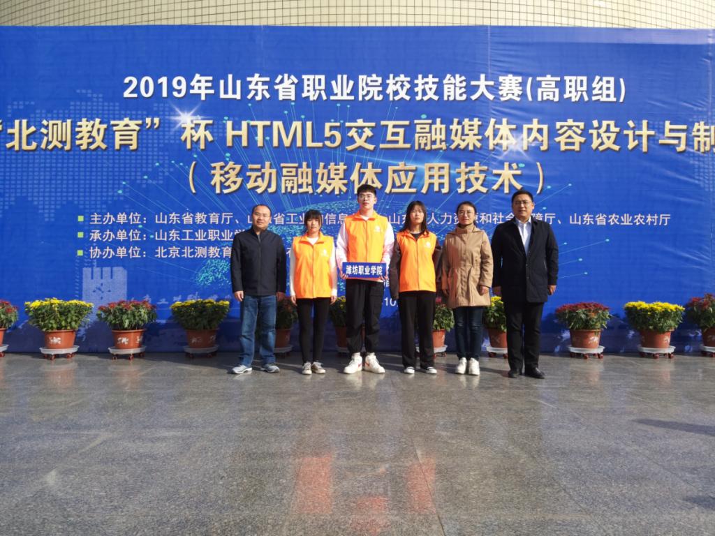 近日,2019年山东省职业院校技能大赛高职组“HTML5交互融媒体内容设计与制作”大赛在山东工业职业学院举行,全省39所院校参加比赛。信息工程学院王子顺、李晶、丁梅3位同学在指导教师郑伟、于丽丽的带领下,经过激烈角逐,获得山东省高职组二等奖。
