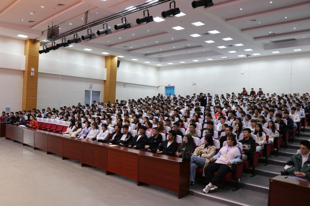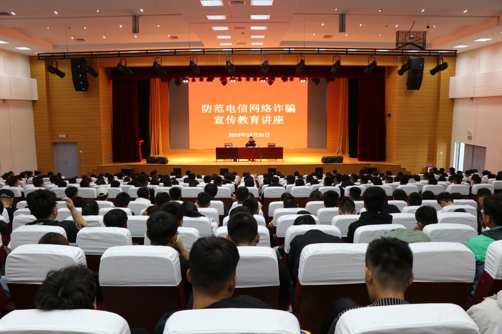 10月31日下午,学院在滨海校区图书馆报告厅举办了防范电信网络诈骗宣传教育讲座。讲座邀请滨海区公安分局刑警大队反信息诈骗中心警官周翔、滨海区公安分局央子边防派出所执法队队长黄志豪主讲,各二级学院师生代表共450人参加。