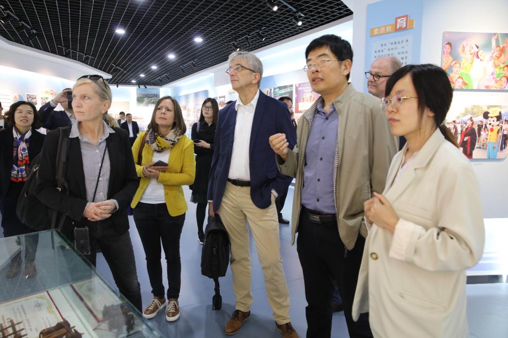 刘德强陪同客人参观了学院校史馆,介绍了学院的历史沿革、办学成果、技能大赛、人才培养、国际交流与合作等概况,观看学院宣传片。随后,进行了座谈交流,刘国庆介绍了我市与阿莎芬堡市结为友好城市的发展历程,该市与潍柴动力在德国的技术合作项目等。Friedbert Rudolf Eder对MG冰球突破官网发展及办学成果给予高度评价,介绍了阿莎芬堡市工商会在华相关项目, 希望促进与MG冰球突破官网在先进技术转化、教育交流等方面的合作。刘德强介绍了MG冰球突破官网专业发展情况、前期与德国合作交流项目等,希望在智能制造类专业、先进技术转化等领域与德国技术类大学开展合作,并借助潍柴动力与德国的技术合作平台,在中外校企合作育人,服务企业“走出去”方面寻找更多合作切入点。