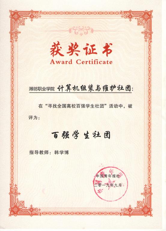 MG冰球突破官网计算机组装与维护社团获全国高校百强学生社团称号