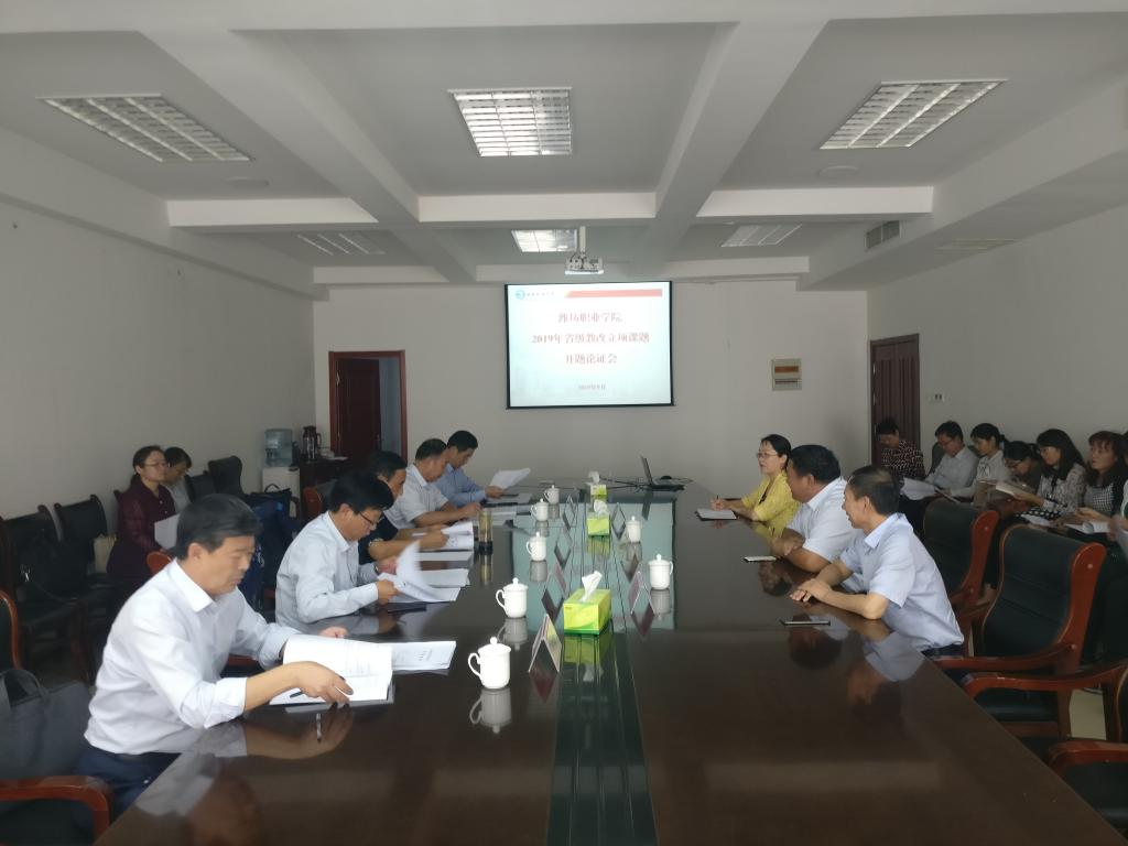9月21日,根据山东省教育厅《关于公布2019年度山东省职业教育教学改革研究立项项目的通知》要求,MG冰球突破官网组织了以王汉忠教授为组长的专家论证组,对2019年立项的11项山东省职业教育教学改革研究项目进行开题论证。院长王家爱、副院长李瑞昌参加了论证会,各项目组成员、教务处相关人员参加了会议。