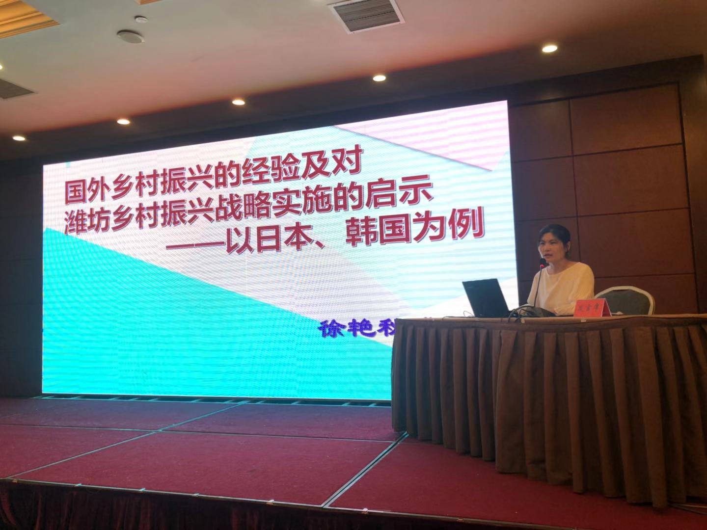 9月20日,潍坊市第五届中日韩产业博览会期间,潍坊市委、潍坊市人民政府在潍坊市东方大酒店举办乡村振兴专题研讨会,来自国家农业农村部农村经济研究中心、清华大学、山东省社科院、山东大学、潍坊市科学发展研究院的知名学者和专家与会,MG冰球突破官网信息工程学院副院长、国际经济与政治文化研究所所长徐艳秋博士应邀参加研讨并作交流发言。