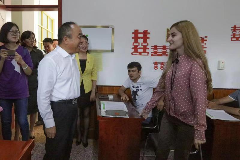 在潍坊市大学生“互联网+”创业中心,初宝杰与已经成功创业和准备创业的在校或毕业大学生进行了深入交流,为大学生们的创业精神点赞。在留学生学习室,初宝杰与留学生亲切交谈,了解学生学习生活情况。并指出,潍坊是风筝之都,希望同学们在潍坊学成以后像风筝一样飞往世界各地。在学生餐厅,初宝杰仔细查看卫生状况、饭菜质量,并与就餐学生亲切交流,对学院规范管理,高水平、高质量服务师生学习生活给予充分肯定。