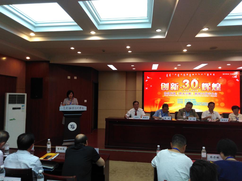 会上,学报社长、包头职业技术学院院长王茂元作了《坚持走改革创新之路,把职大学报办得更好》主题报告,学报主编周秉高教授汇报了编辑部30周年的工作历程和办刊经验,副主编杜洪香教授作为编委代表致辞。会议分别开展了创刊30周年编委工作研讨会和“楚辞学前沿论坛”、“墨学高峰论坛”、“女性文学与性别文化研究高峰论坛”和“全国第三届歌词评论研讨会暨军旅歌词研讨会”四个高端论坛。在杜洪香副主编主持的创刊30周年编委工作研讨会议中,来自各个高校的编委们建言献策,讨论和交流了各编委学校的办学情况和对学报发展的意见和建议,总结了创刊30周年的经验。全体与会编委和专家都对《职大学报》提供的平台表示了感谢和感恩,对社长、主编及编辑部全体成员的艰辛付出和奉献表示由衷的感激。