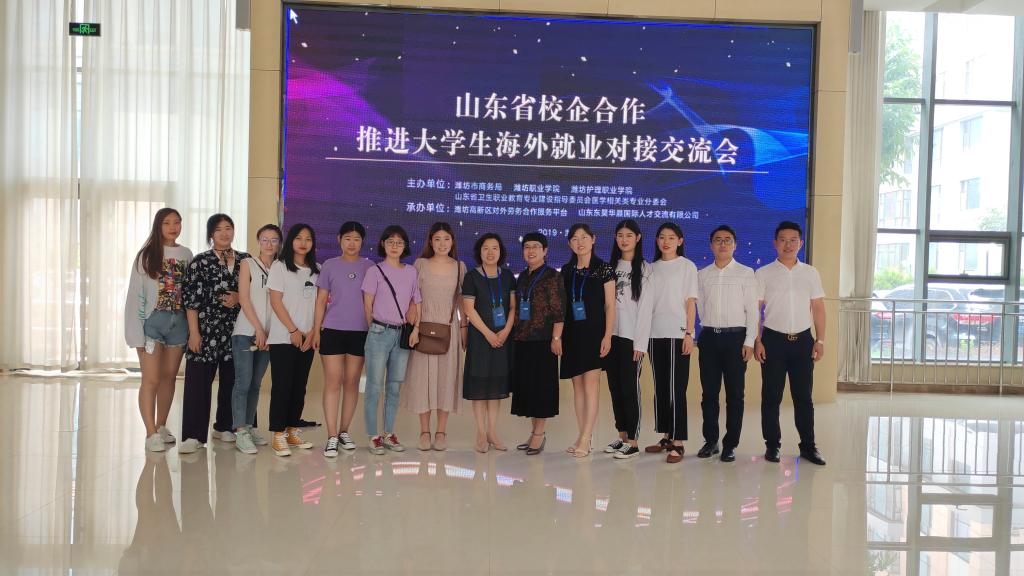 7月11日,山东省校企合作推进大学生海外就业对接交流会在潍坊人力资源服务产业园举行。来自省内外的30多家高校代表和海外就业学生代表参加活动。MG冰球突破官网国际交流处、国际商务学院负责人出席会议。