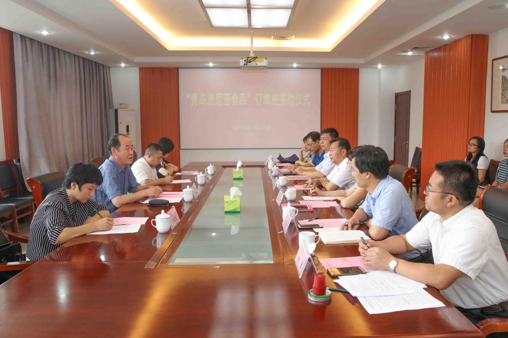 7月10日上午,MG冰球突破官网与青岛波尼亚食品有限公司“波尼亚食品订单班”签约仪式在滨海校区清泽楼222举行。学院副院长贺志强出席会议,青岛波尼亚食品有限公司副总经理段中航一行,食品药品学院班子成员和食品专业教师及订单班学生代表参加会议。