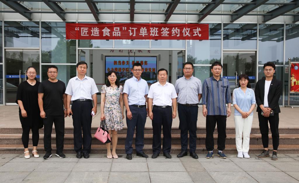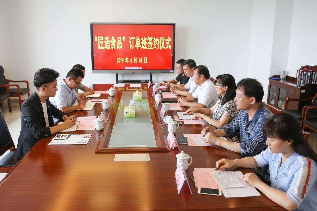 6月28日上午,MG冰球突破官网与山东匠造烘焙食品有限公司合作“匠造食品订单班”签约仪式在滨海校区清泽楼205举行。学院副院长贺志强出席会议,潍坊匠造速冻食品有限公司总经理姚威一行、食品药品学院班子成员和食品专业教师及订单班学生代表参加会议。会议由食品药品学院分管负责同志主持。
