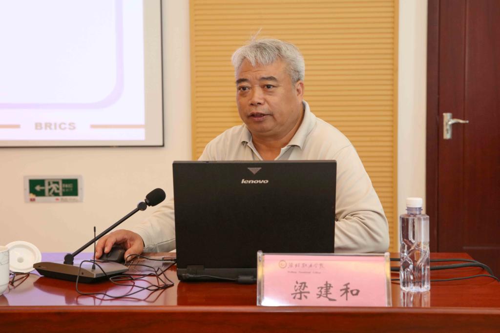6月5日-6月6日上午,2019“一带一路”暨金砖国家技能发展与技术创新大赛综合职业能力测试模块裁判员培训会在MG冰球突破官网清泽楼312会议室召开。北京师范大学赵志群教授,一带一路暨金砖国家技能发展国际联盟副理事长、北京企学研教育科技研究院院长刘辉,一带一路暨金砖国家技能发展与技术创新大赛技术委员会副主任、广西机械工程学会副理事长梁建和教授,学院院长王家爱,副院长李瑞昌,教务处、机电工程学院主要负责同志及专家、裁判人员、教师、企业代表50余人参加了会议并进行了研讨。
