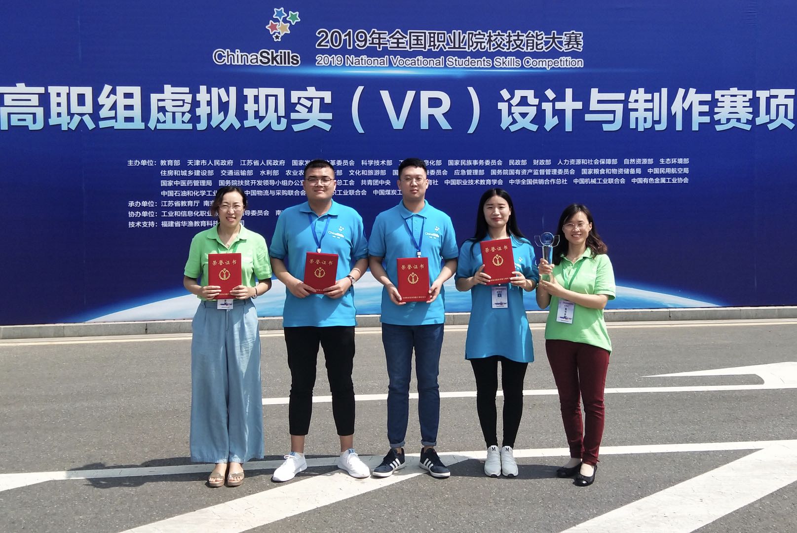 5月31日,2019年全国职业院校技能大赛高职组“虚拟现实(VR)设计与制作”赛项在南京信息职业技术学院举办,来自全国80个代表队参加角逐。MG冰球突破官网学生赵术涵、李浩、崔宁组成的代表队,在指导教师团队刘德强、朱丽兰、刘萍的指导下获得团体一等奖,指导教师刘德强、朱丽兰获“优秀指导教师奖”。