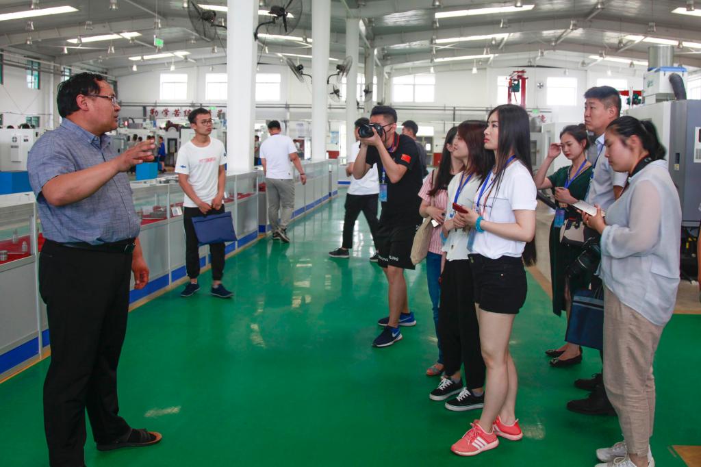 宋桂言代表学院对媒体朋友的到来表示热烈欢迎,向大家简要介绍了近年来学院办学取得的显著成效。媒体采访团一行参观了学院校史馆、图书馆,观看了专题宣传片,参观了信息工程学院大学生创研中心、农林科技学院智能温室、经营管理学院VR智慧实训室、机电工程学院智能制造实训中心、汽车工程学院新能源汽车和营销中心等实习实训场所,实地察看了绿色生态的校容校貌和丰富多彩的校园文化。相关部门和二级学院负责同志就学院优质校建设、人才培养、现代学徒制、校企合作、对外交流、创新创业、生态校园建设等方面情况作了介绍,媒体记者与实训指导教师进行了深入交流,并同实习实训学生进行了互动访谈。