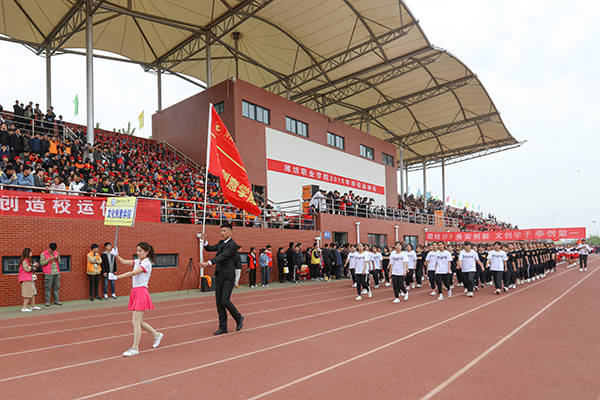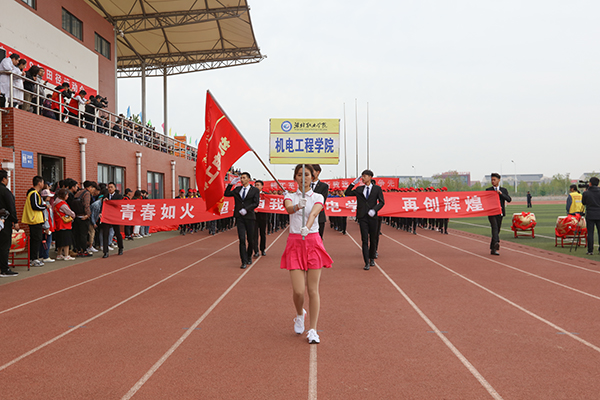 上午8时30分,伴随着激扬豪迈的运动员进行曲,气宇轩昂的国旗护卫队昂首挺胸,彩旗方队、裁判员方队以及各二级学院代表队迈着矫健的步伐,喊着嘹亮的口号,意气风发、精神抖擞依次通过主席台,赢得了全场师生的掌声和欢呼。