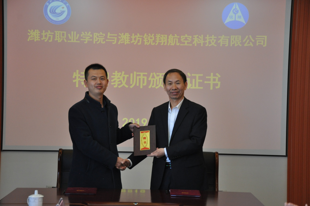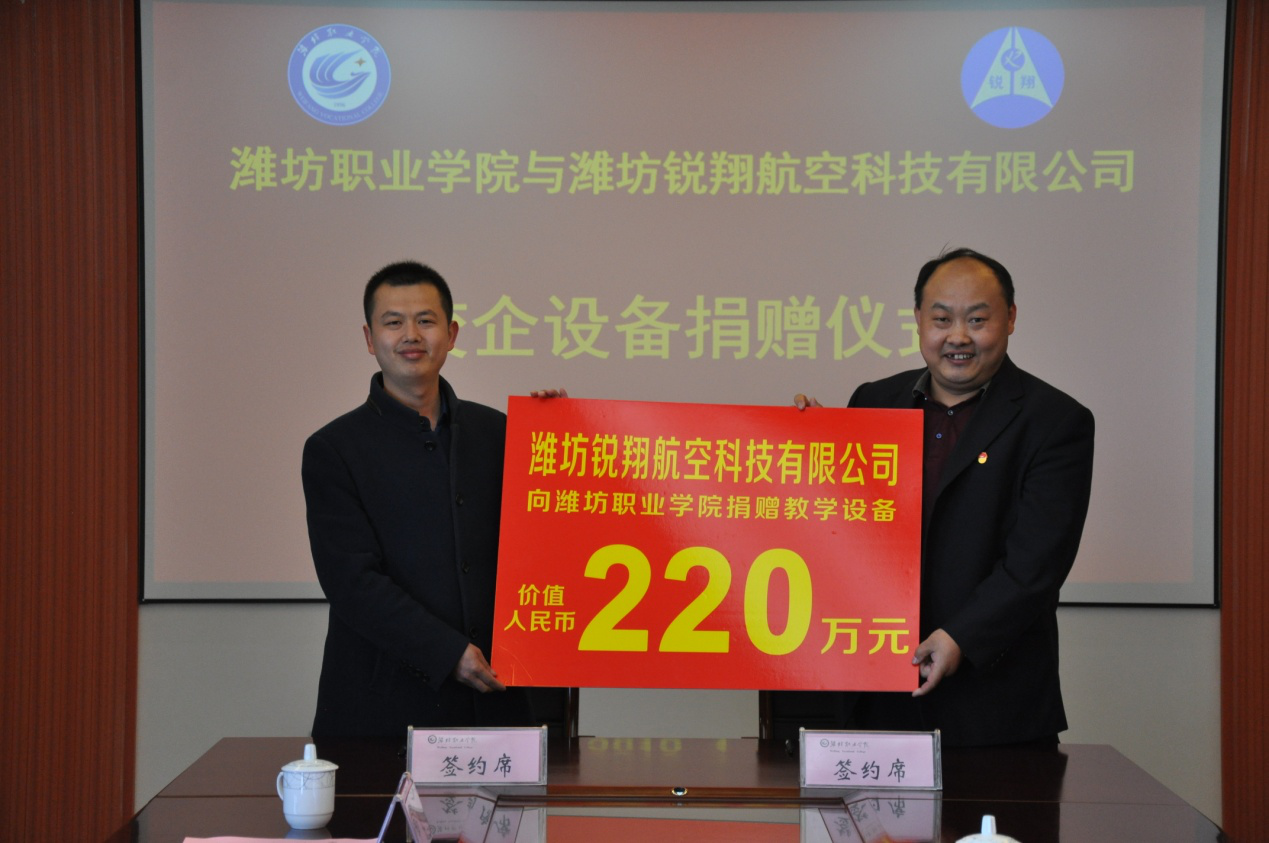 MG冰球突破官网与潍坊锐翔航空有限公司举行校企共建无人机实训室协议签署暨设备捐赠仪式