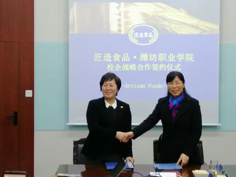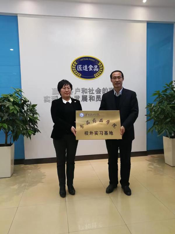 12月19日下午,MG冰球突破官网与山东匠造烘焙食品有限公司战略合作协议签订仪式暨食品药品学院校外实习基地、教师企业工作站授牌仪式在山东匠造烘焙食品有限公司举行。学院副院长赵君堂、山东匠造烘焙食品有限公司总经理邓洁出席仪式,食品药品学院负责同志、教学管理办公室主任、食品技术教研室主任、产学合作办公室工作人员及部分骨干教师、山东匠造烘焙食品有限公司相关人员参加了活动。