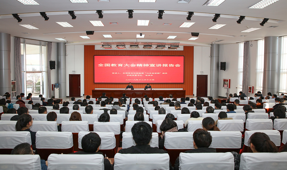 12月13日,全国教育大会精神“山东宣讲团”成员、学院党委书记张洪全在滨海校区清泽楼报告厅作全国教育大会精神专题宣讲。党委副书记宋桂言,副院长赵君堂、贺志强,纪委书记郭晓辉,党委委员、办公室主任谭明,副科级及以上干部,2018年新进教师和学生代表共300余人参加报告会。宋桂言主持报告会。