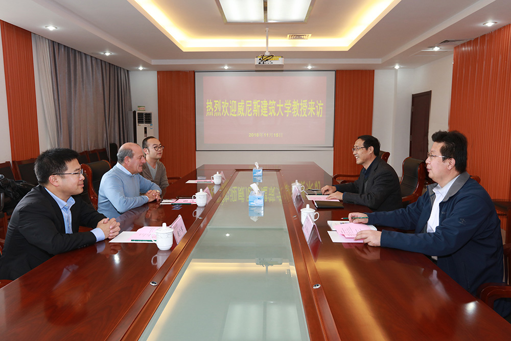 11月15日,意大利威尼斯建筑大学Antonio Pantuso教授一行三人来MG冰球突破官网访问,学院副院长赵君堂在滨海校区接待了客人,宣传统战处负责人参加座谈交流。