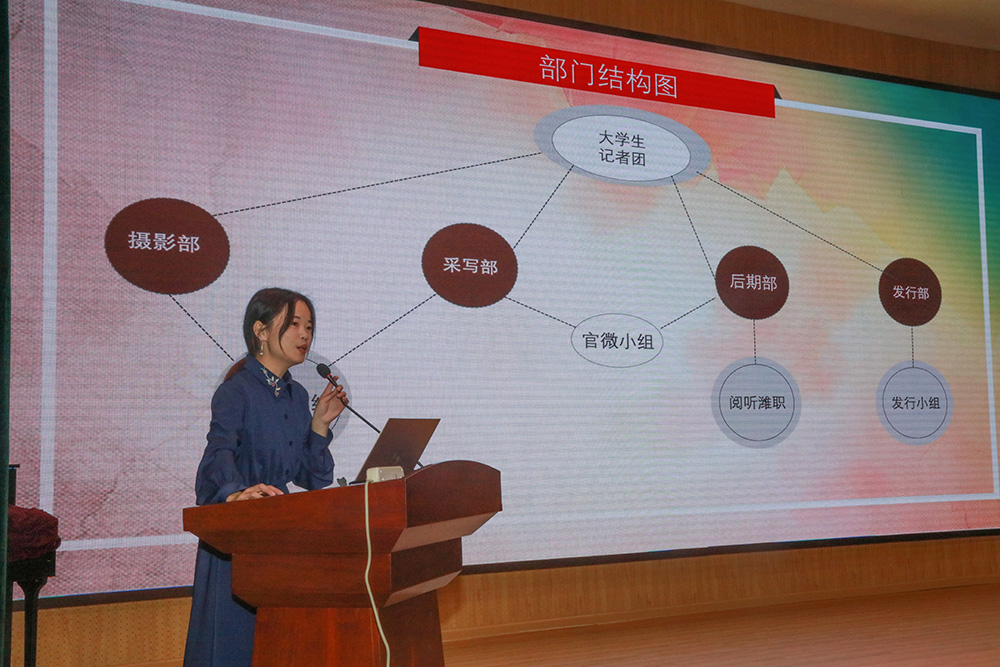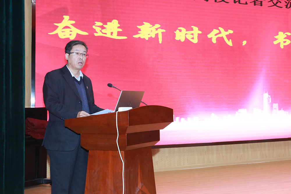 宣传统战处负责同志致辞,代表MG冰球突破官网宣传统战处和广大师生对驻潍大学生记者朋友的光临表示热烈的欢迎,介绍了几年来MG冰球突破官网取得的显著办学成就和大学生记者团在院报、官微方面采写报道取得的成绩。希望驻潍高校大学生记者坚持党性原则,强化政治意识,各高校加强交流,各抒己见,汇智聚力,协同发展,接好“天气”,接好“地气”,写出有高度、深度、精度、温度的新闻报道,更加自觉唱好高校育人好声音。