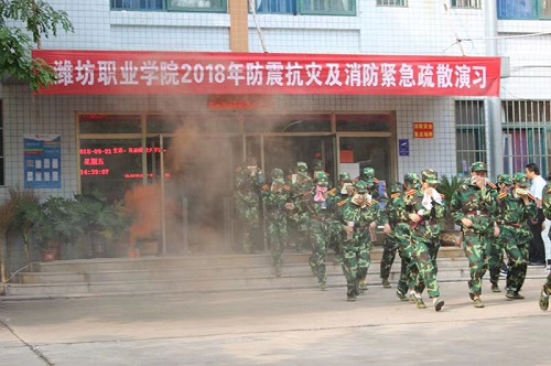 9月21日下午,学院分别在滨海、奎文校区举行2018级新生防震抗灾及消防紧急疏散演习。学院党委副书记宋桂言出席活动现场并担任演习总指挥。学生工作处、安全保卫处负责同志及相关人员,各二级学院分管学生工作负责人、辅导员、班主任,全体军训教官及2018级新生参加了演习。