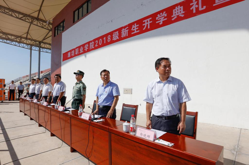 金秋九月,清风送爽。9月17日上午,学院2018级新生开学典礼暨军训动员大会分别在奎文、滨海校区体育场隆重举行。学院院长王家爱,驻潍某部首长马永江、何龙翔,党委副书记宋桂言,副院长贺志强、李瑞昌,纪委书记郭晓辉,党委委员、办公室主任谭明等出席。大会由宋桂言主持。