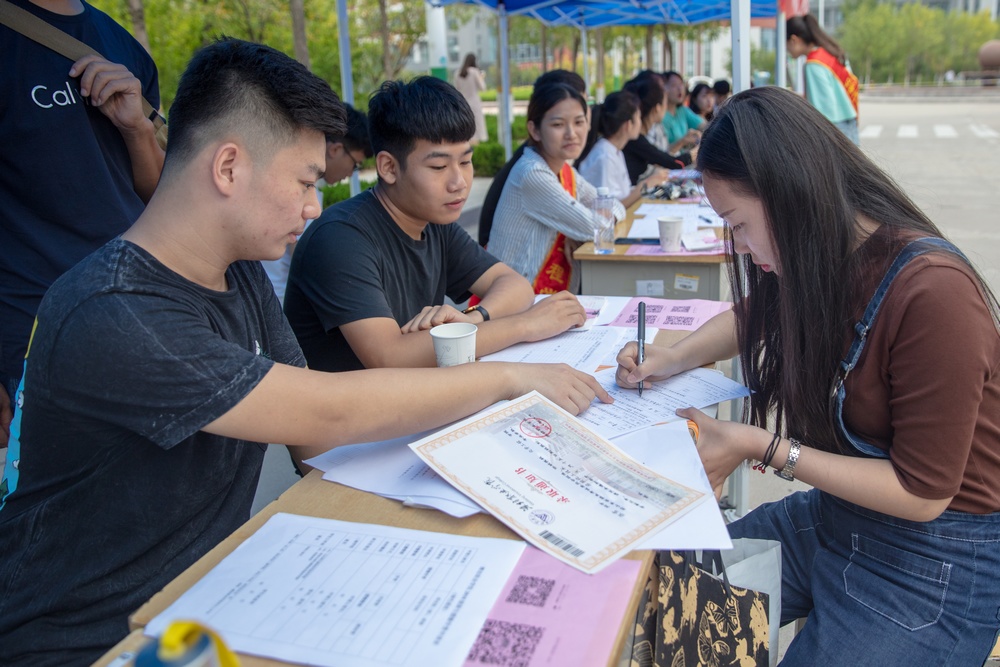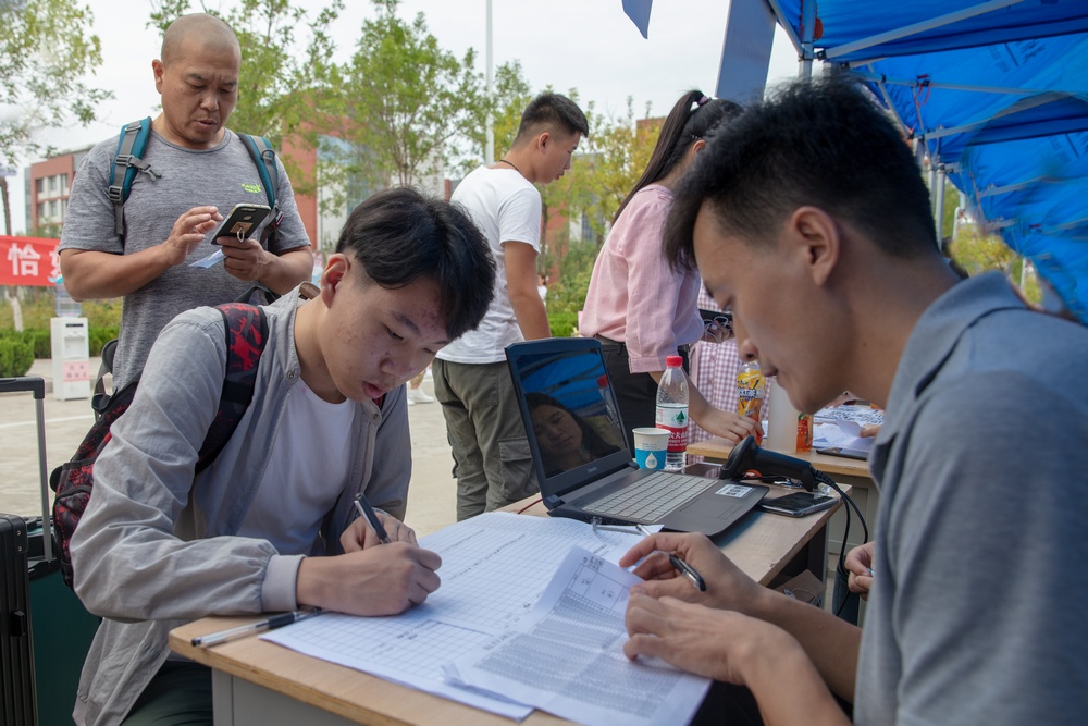 截至15日下午5点,已有来自全国的4800余名新生报到入学,17日新生将开展为期14天的军训教育。(鞠发营供稿)