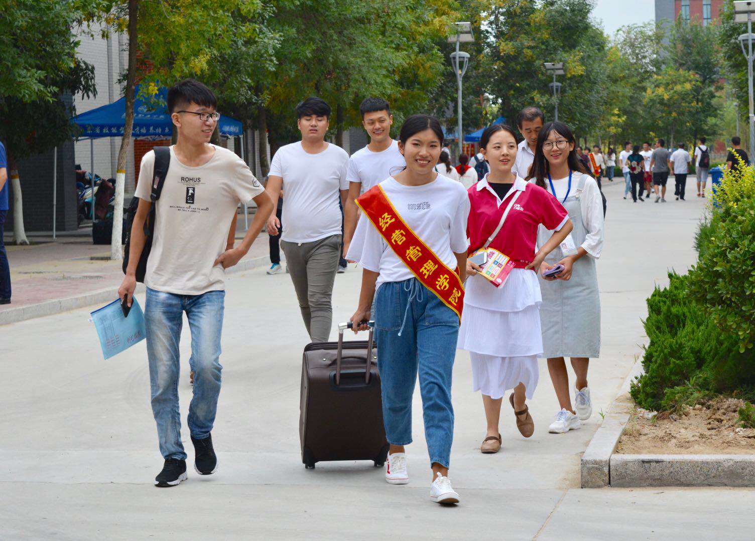 滨海、奎文校园迎新接待点,每一位新同学和家长在迎新志愿者帮助和指引下快速找到自己所在学院。各二级学院紧密结合学生实际和专业特色,精心筹划开展了各具特色的迎新服务。各学院接待点整齐排列,新生接待工作人员认真负责,一丝不苟,对家长、新生的各类问题进行耐心解答,各二级学院通过微信、QQ群和微信公众平台等新媒体,提前和新生建立联系,进行交流,及时向新生们推送有关报到、军训、入学教育、心理适应等内容,为新生提供从入学到大学生活所需要的指导信息,赢得了新生和家长的一致称赞。