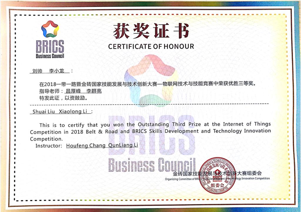 MG冰球突破官网获“一带一路”暨金砖国家技能发展与技术创新大赛“物联网技术与技能”赛项三等奖