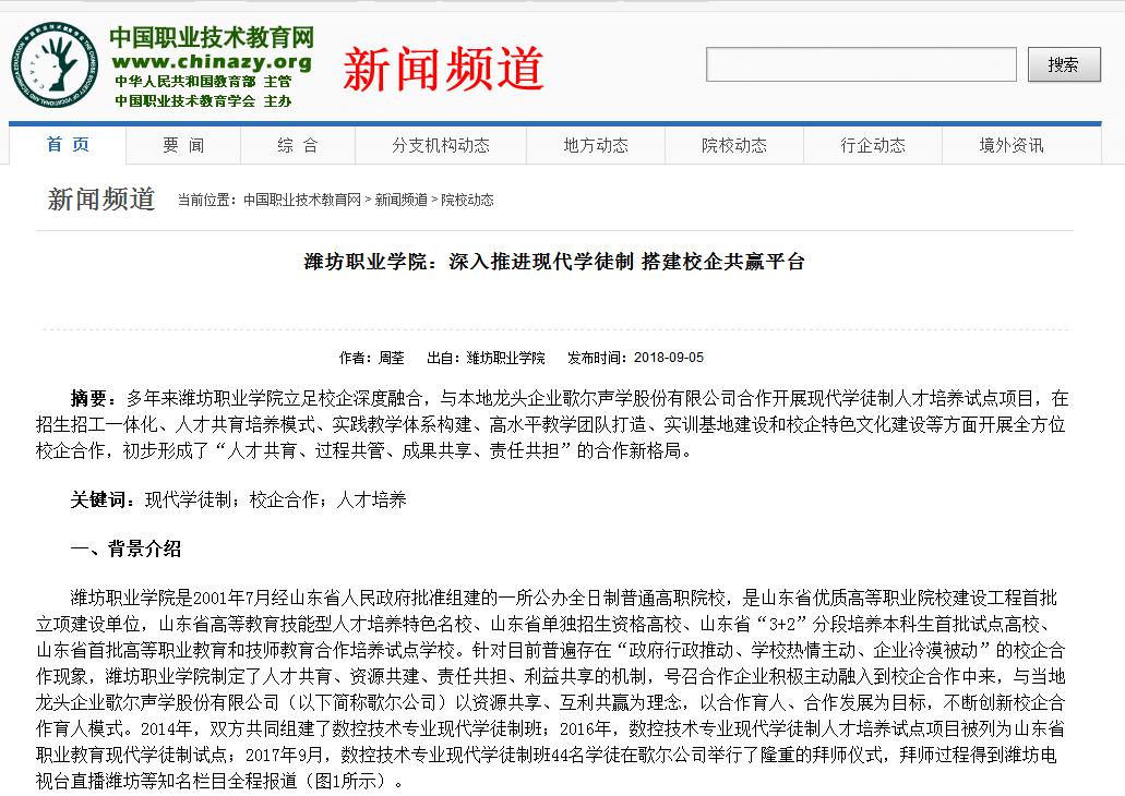 日前,以该试点项目为依托的典型案例材料—“深入推进现代学徒制、搭建校企共赢平台”被中国职业技术教育网采录并宣传(相关链接:http://www.zjchina.org/platform/service/zxnews/shtml/201809/14530.shtml),引起大量关注与好评,也成为MG冰球突破官网近年来实施校企深度合作,实施“产教融合、学岗融通”的人才培养模式的生动案例。