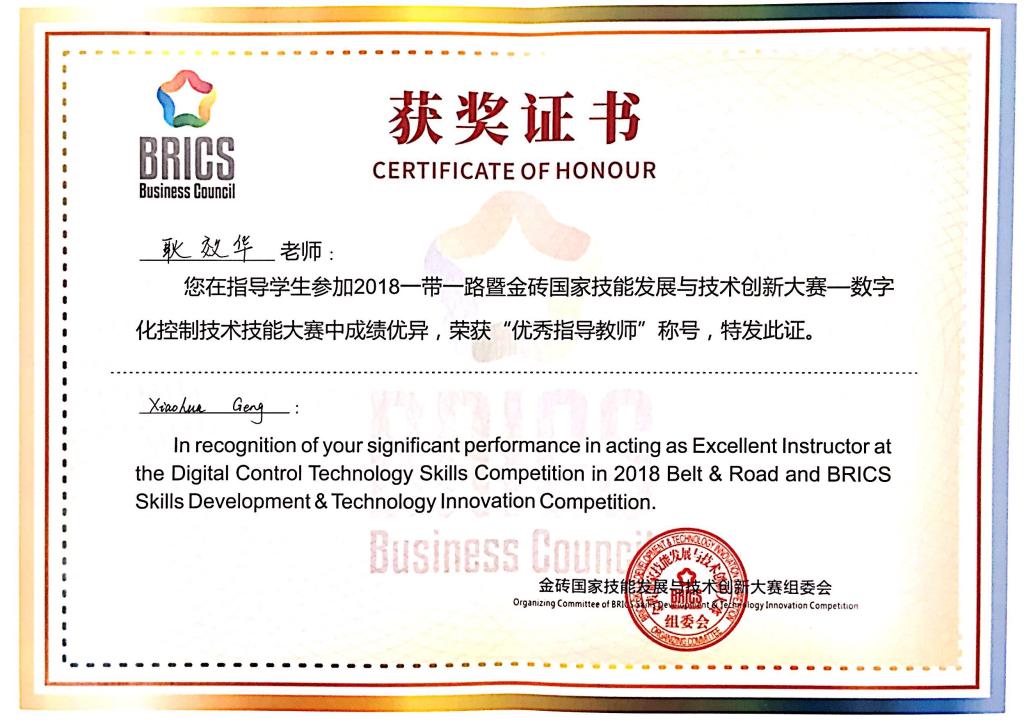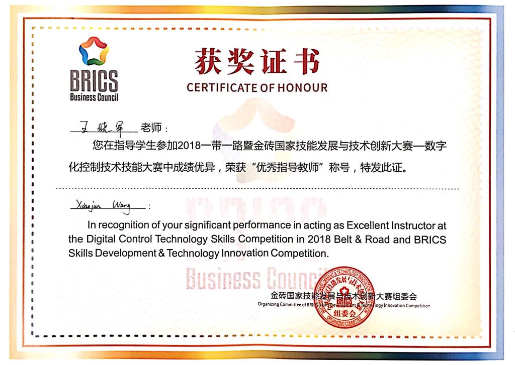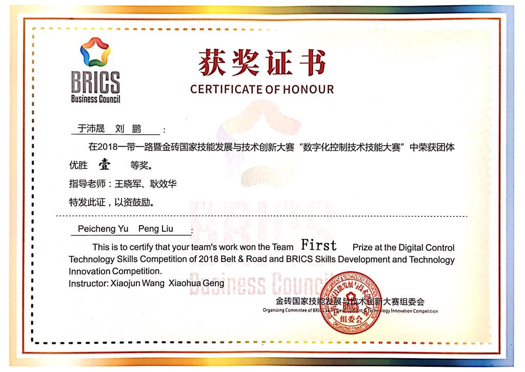 MG冰球突破官网获“一带一路”暨金砖国家技能发展与技术创新大赛“数字化控制技术大赛”一等奖