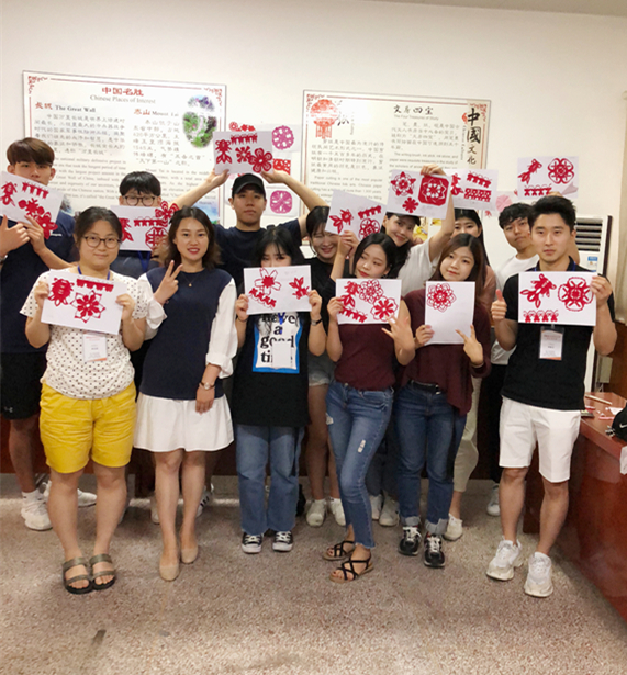 为使活动达到预期效果,MG冰球突破官网对韩国研修团相关活动进行了精心筹划,活动安排紧凑,课程设置丰富。不仅设有传统的汉语课,还开设了茶艺、汉服旗袍、剪纸、太极拳、中国画等中国传统文化体验课。组织参观了MG冰球突破官网滨海校区及滨海城市中心,开展了包饺子、中韩师生结对子和才艺展示联谊会等形式多样、寓教于乐的课外活动。同时,还组织学生深入了解了潍坊文化名胜,参观了杨家埠木版年画及风筝制作现场、青州古城、博物馆等,使学生们在较短时间内最大限度地提高了汉语水平,亲身感受了博大精深的中国文化及潍坊当地文化特色。