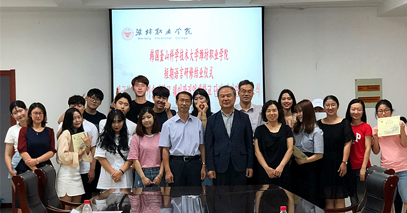 7月6日至15日,韩国釜山科技大学学生团来MG冰球突破官网进行为期10天的语言学习及文化体验活动顺利完成。7月14日结业仪式在奎文校区11号楼第二会议室举行,学院副院长赵君堂、国际交流与合作处相关负责同志及教师代表,以及来自釜山科技大学中文系的17名师生参加了结业仪式,赵君堂对本次活动进行了总结,并为交流团学生颁发了证书。