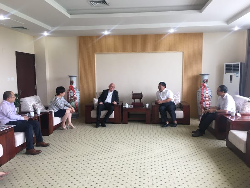 揭牌仪式举行前,王家爱在学院接待了德国企业管理协会(REFA)大中华区代表沃夫冈·瓦格纳博士、北京无限智联科技有限公司董事长吴垠一行。王家爱从学院办学历史、滨海校区建设、专业建设、师资队伍、技能大赛、混合所有制、创新创业教育等方面介绍了学院有关情况。沃夫冈·瓦格纳对学院取得的成绩表示了祝贺和赞许,并对今后可能开展的合作表示了极大的兴趣和愿望。(徐京峰供稿)