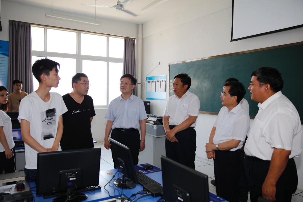 6月20日下午,省委教育工委委员、省教育厅副厅长白皓、职教处处长梁斌言一行来MG冰球突破官网调研工作,潍坊市教育局局长徐友礼,高等教育办公室副主任李广敬等同志陪同,学院党委书记张洪全,院长王家爱,副院长李瑞昌,党委委员、办公室主任谭明参加调研,办公室、教务处、信息工程学院等相关部门负责人参加了调研。
